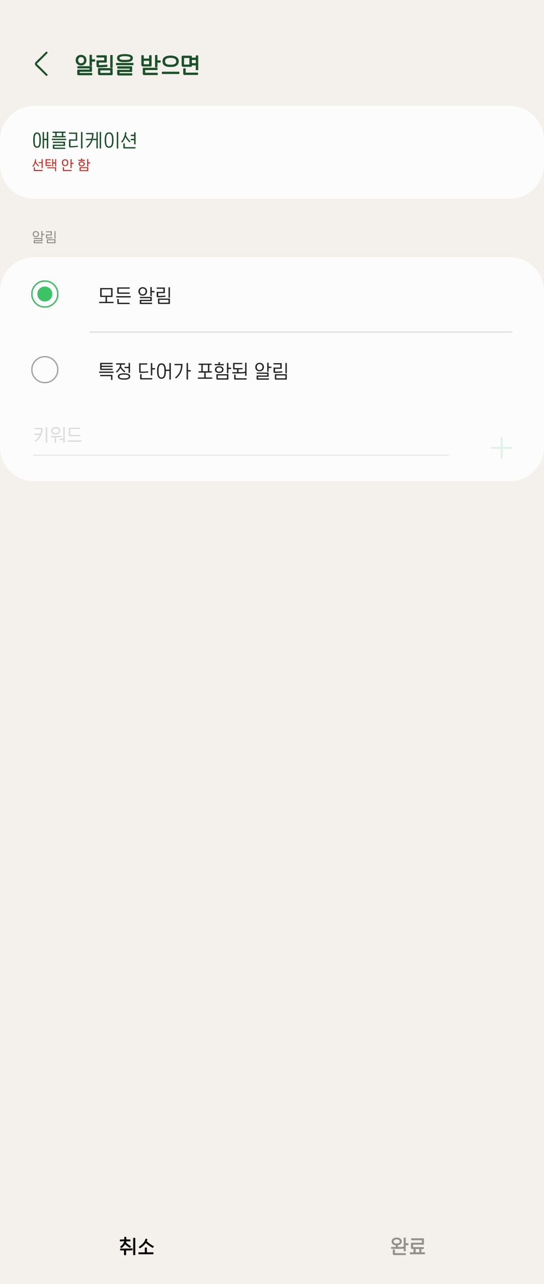 애플리케이션을 선택해주셔야 완료가 눌러집니다.