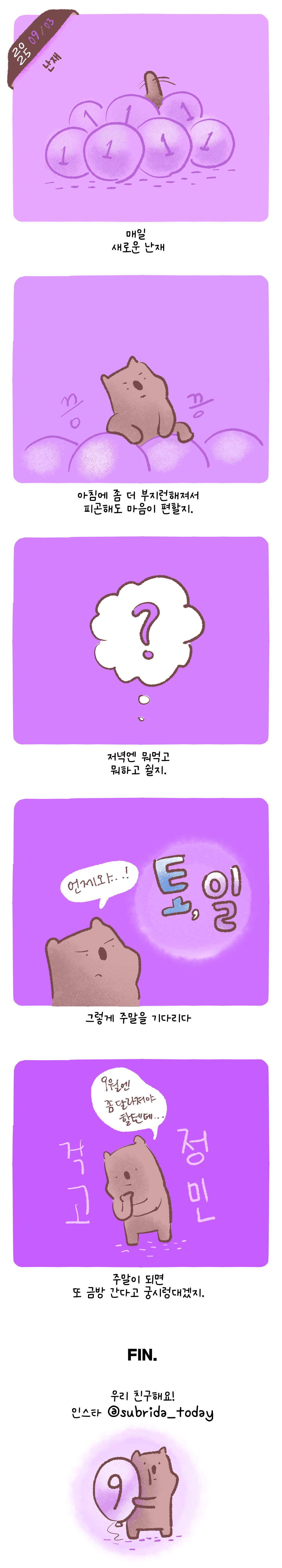 작업ㅣ스튜디오/섭섭하지 않은 쿼카 그림일기 난재 by 섭카 2025. 9. 3. 250903 그림일기 웹툰 정신 차려야지차려야지해야지해야지 하면서안 하고생각하고걱정하고고민하고제발.달라지자!움직이자 공유하기 게시글 관리 섭리다 스튜디오 '작업ㅣ스튜디오 > 섭섭하지 않은 쿼카 그림일기' 카테고리의 다른 글 슬슬 (1) 2025.09.06 바뀌기위한 조건 (1) 2025.09.04 나란놈 (2) 2025.09.02 여유일까 (2) 2025.08.29 변한 중고나라 (2) 2025.08.28 관련글 슬슬 바뀌기위한 조건 나란놈 여유일까 댓글